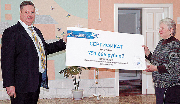 Клиенты АЗС стали благотворителями В минувшую пятницу в Правдинском детском доме был праздник. Здесь радовались новым друзьям, которые выделили значительные средства на обеспечение материальной базы учреждения. Деньги в сумме более 750 тыс. руб. планируется теперь направить на ремонт крыши. Событие это не рядовое, хотя надо сказать, что подобные подарки наш детский дом получает не первый раз.